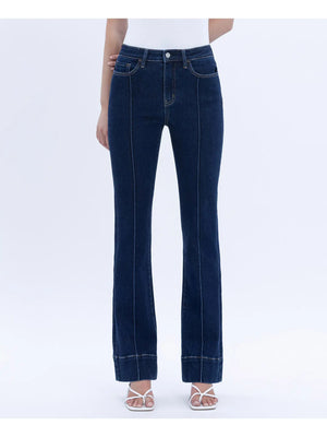 High rise cuffed crop slim straight jeans Comfort stretch denim, high rise waist, 5 pockets, clean cut raw hem, single cuff hem, cropped length, dark wash, slim straight jeans F. Rise: 10" / inseam: 27" / leg opening: 14 1/2" / cuff 4" x 1
