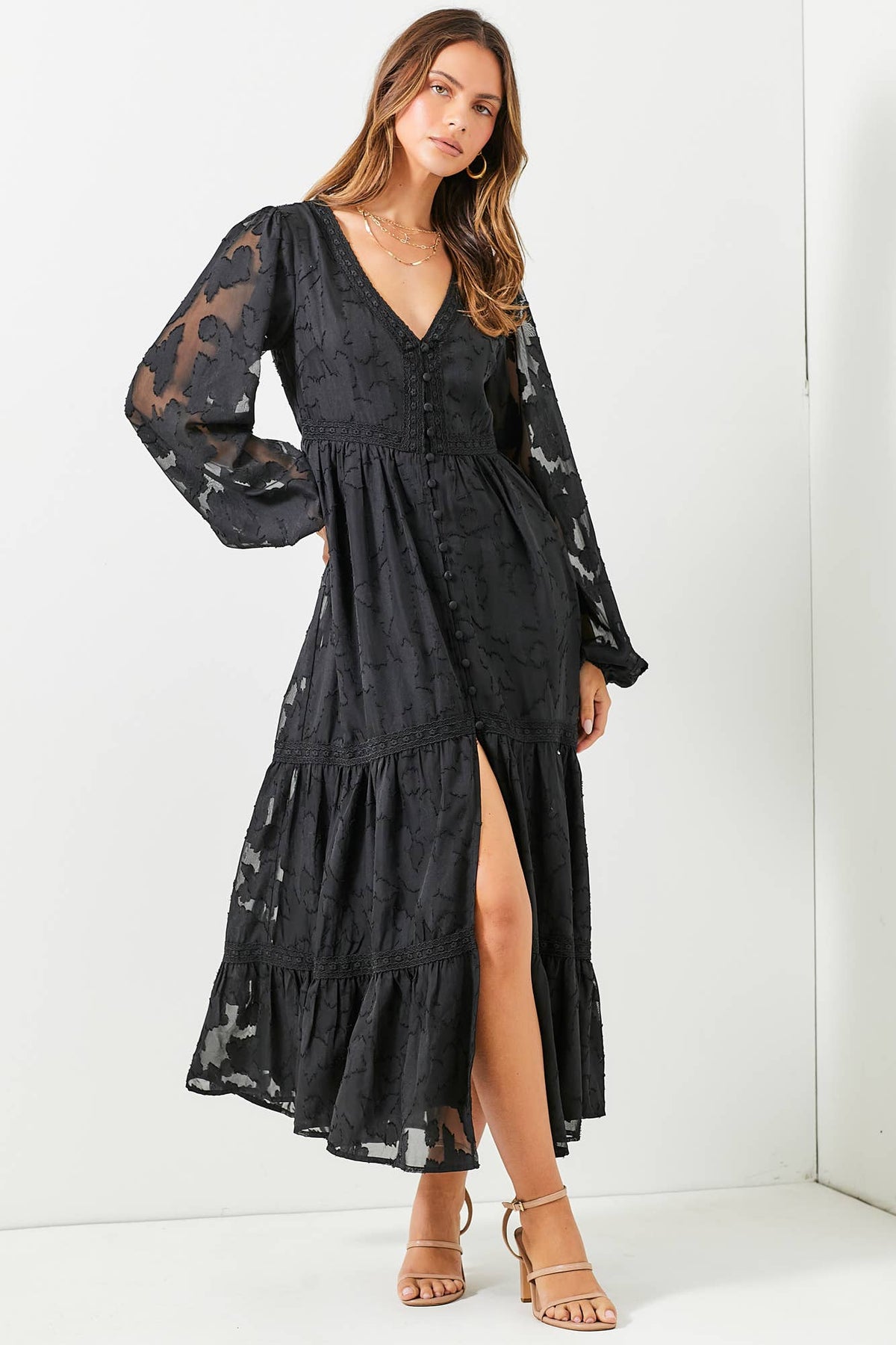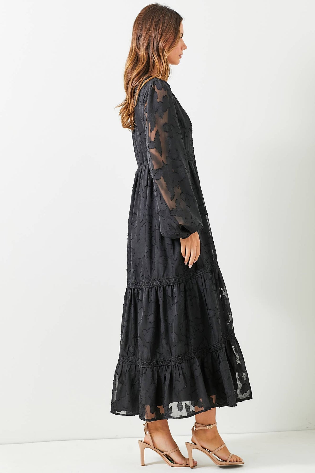 Textured floral dress with back rouching for a perfect fit!
