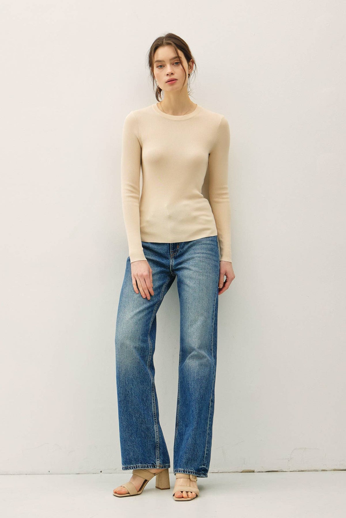 * BASIC * CLASSIC * PULLOVER * CREW NECKLINE * ROUND NECKLINE * LONG SLEEVE * FITTED * FINE RIBBED * RIB KNIT * BODY-HUGGING FIT THROUGHOUT * STRETCHs * SOFT * HIP LENGTH
