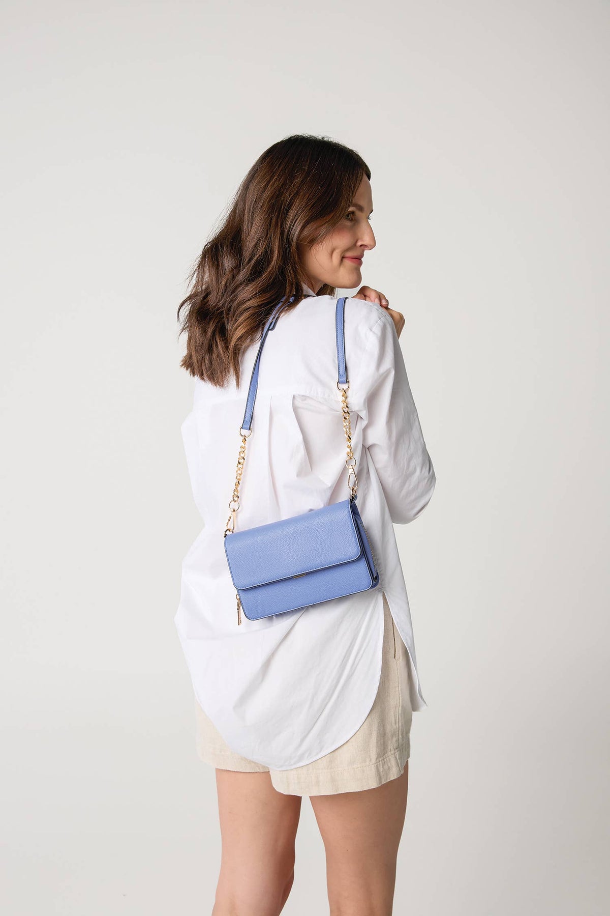 *Select colors on sale Item Details: -Multi-Compartment: Organized storage for your essentials. -Push-Open & Zip Closure: Dual closure for added security. -Chain Strap Detailing: Adds elegance to the design. -Adjustable/Removable Strap: Versatile for crossbody or clutch-style carry. Dimensions: -Length: 8 inches -Height: 5 inches -Depth: 1.5 inches Fall/Winter Color Added The Lauryn Crossbody is a compact and stylish choice, perfect for those who value both fashion and functionality in their everyday accessories.